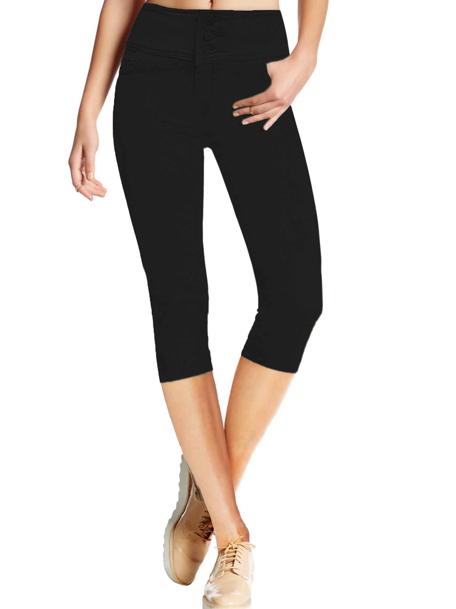 Plus Size Women Butt Lift 3 Button High Wide Waist Capri