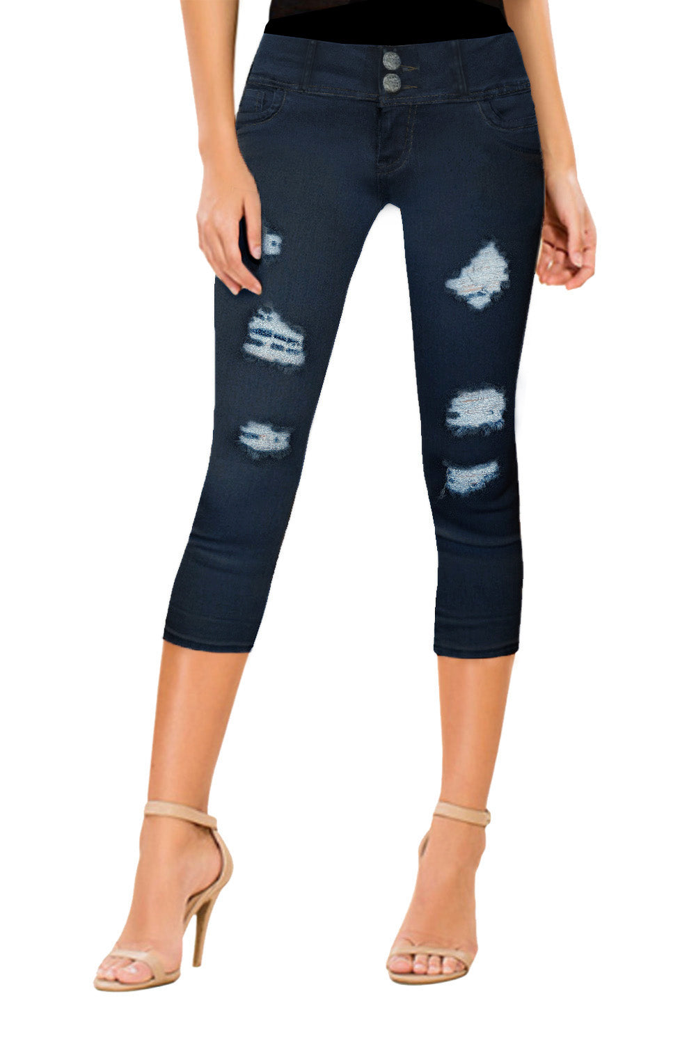 Women's Ripped/Destructed Butt Lift V2 Super Comfy Stretch Denim Capri